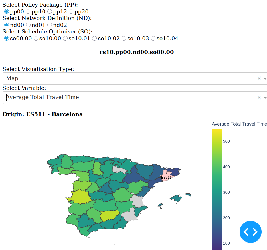 It is designed to support researchers and analysts in visually inspecting strategic scenarios, comparing policy packages, and understanding multimodal passenger flows across air ✈️, rail 🚆, and multimodal 🔁 networks.